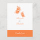 Moderne et élégant design mandarin orange et blanc papillon. Carte de remerciements entièrement personnalisable. Disponible sous forme d'invitations, enregistrer la date, faire-part, rsvp, faveurs pour mariages, fêtes, douche nuptiale, fiançailles et toute autre occasion spéciale. Cliquez sur le bouton "Customiser" pour modifier les couleurs ou les polices du texte. Design original par Ruxique.