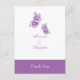 Design moderne et élégant violet et papillon blanc. Carte de remerciements entièrement personnalisable. Disponible sous forme d'invitations, enregistrer la date, faire-part, rsvp, faveurs pour mariages, fêtes, douche nuptiale, fiançailles et toute autre occasion spéciale. Cliquez sur le bouton "Customiser" pour modifier les couleurs ou les polices du texte. Design original par Ruxique.