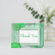 Impressionnamment belle, cette carte de remerciements verte personnalisée est composée d'une fleur verte, d'images en bois et de "Merci" en caractères verts gras. L'arrière est décoré d'une teinte vert clair. Commandez les vôtres dès aujourd'hui ! RSVP Design : WeddingsbyRhoadie Illustration du thème de l'automne devant : Oberholster Venita