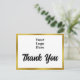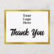 Avant : il y a une image d'affichage en haut que vous pouvez remplacer par votre logo. Merci apparaît dans un grand script noir. Le devant a également une bordure dorée fausse (pas de feuille d'or).