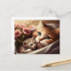 Deux âmes douces et câlées, unies dans un moment de paix. Une chatte-mère et son petit chaton, enveloppés dans une feuille molle, se serrent les coudes, donnant une chaleur réconfortante. Les fleurs roses qui les entourent apportent une touche délicate à cette charmante scène. Que ces adorables chatons apportent joie et tendresse à la vie de ceux qui reçoivent cette carte postale.