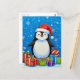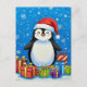 Spread holiday cheer with this adorable penguin in a Santa hat surrounded by colorful gifts and snowflakes. A cute watercolor-style Christmas postcard that’s perfect for kids, families, and animal lovers alike. Send warm wishes and festive smiles this season!