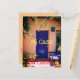 Ma photo d'un patio cour de l'adobe hacienda invitant avec une belle porte bleue et un banc dit, "Mi Casa es Su Casa" dans une police décontractée. Utiliser pour la correspondance ou comme invitation à une fête de la fiesta ou un barbecue. Un accueil chaleureux pour le destinataire avec ses tons pêche, bleu et vert.