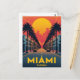 Step back in time with this vibrant, vintage-style travel postcard featuring Miami Beach, Florida. The design captures the essence of the Art Deco Historic District with its stylized row of buildings, classic palm tree silhouettes, and a dramatic, colorful sun setting over the street. This retro travel poster is perfect for celebrating your South Florida vacation, adding a touch of tropical deco to your space, or sending sunny greetings. Ideal for Art Deco lovers, beach enthusiasts, and anyone who enjoys bold, 1980s-inspired synthwave or retro designs.