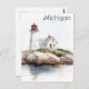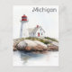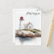 N'importe qui aimerait recevoir cette carte postale de voyage en aquarelle illustrant un phare sur les Grands Lacs du Michigan, l'état avec le plus de phares aux États-Unis!