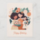 Carte Postale Mignon dessin animé mère fille filles. Joyeux Anni
