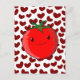 Belle caricature à la tomate rouge et aux coeurs. Cartes postales personnalisées. Design dessiné à la main. Idée cadeau pour les personnes de tous âges qui aiment les tomates et les légumes mignons.