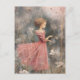 Créez un look rêveur et enchanteur avec cette carte postale, avec une palette de couleurs pastel douce et une illustration fantaisiste d'un jeune fille jouant dans un pré de pissenlit. Parfait pour ceux qui aiment le rêve et enchanteur design magique, rose et gris doux et féminin.