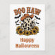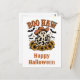 Souhaitez à tous une joyeuse Halloween avec cette carte postale mignonne et amusante qui représente une illustration d'un fantôme de vache de l'Ouest disant "boo haw !