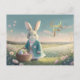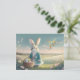 Carte Postale Mignonne lapin de Pâques en petite veste bleue
