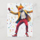 Un drôle de renard en tenue humaine avec un arrière - plan à pois coloré