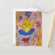 Pâques est un séjour si excitant avec le retour du soleil de printemps, de savoureux oeufs au chocolat et de mignons poussins jaunes. Dans cette charmante aquarelle d'origine, un petit poussin jaune s'installe dans un oeuf fissuré tenant un ballon de lapin de Pâques. L'oeuf est peint en bleu et est modelé en pois multicolores et en arc-en-ciel rouge. De magnifiques fleurs printanières entourent le mignon poussin, dont des tulipes rouge écarlate, des fleurs de maïs bleues et des papillons jaunes.