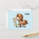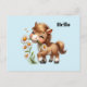 Carte postale avec une adorable illustration. Un petit poney marron se régalant de marguerites.