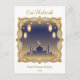 Carte Postale Minimal Blue & Gold Mosque Skyline Eid Mubarak