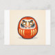 This postcard features a minimalist illustration of a traditional Japanese daruma doll, inspired by classic folk art and woodblock print aesthetics.