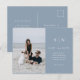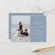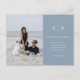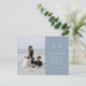 Ce mariage élégant et moderne sauve les cartes postales datées disposent d'un design de texte bleu et blanc poussiéreux qui respire le style minimaliste, avec votre photo personnelle préférée. Ajoutez vos initiales ou votre monogramme pour les rendre complètement vôtres.