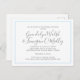 Carte postale faire-part de mariage au design minimaliste. Blanc avec texte gris dans un script manuscrit moderne et texte imprimé. La carte est présentée dans un cadre bleu mince. Modifiez facilement la couleur de la ligne de bordure en utilisant la zone "personnaliser plus loin". Les noms de la mariée et du marié sont en gros caractères. Il s'agit d'un moyen simple et abordable de diriger les clients vers un site Web mariage pour voir les plans, voir des photos et répondre en ligne. Des lignes sont fournies à l'arrière pour les adresses.