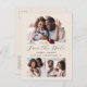 Cette carte postale simple et minimaliste Save the Date comprend une photo en arc en haut et deux petites photos carrés en bas. Entre les deux, les mots "Save the Date" apparaissent dans un élégant script d'écriture noire, suivi des noms du couple, date mariage et ville en sans serif police sur un arrière - plan beige. Ajoutez votre adresse de retour ainsi que des détails supplémentaires au verso.
