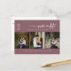 Cette sauvegarde de la carte postale date dispose d'un élégant style moderne minimaliste d'un collage photo trois (tri) avec une calligraphie moderne du libellé "Save the Date" et des polices Serif élégantes pour un look épuré minimaliste et moderne sur un arrière - plan pourpre poussiéreux, qui est une belle façon d'informer sur votre prochain mariage. Annoncez à votre famille et à vos amis que vous vous mariez avec cette carte postale de date et ajoutez une touche personnelle avec de belles photos de vous et votre moitié future meilleure. La simplicité de ce design ajoute une touche d'élégance à votre mariage. Il fonctionne bien avec de nombreux thèmes mariages et certainement un grand ajout à votre mariage. Il suffit de customiser les noms et le libellé en quelques étapes simples et personnaliser la carte postale avec votre photo du couple heureux et remplacer le code QR par le vôtre. Remarque : le libellé "Enregistrer la date" ainsi que d'autres illustrations graphiques et éléments ne peuvent pas être modifiés, modifiés ou supprimés. Si vous devez changer la couleur, vous pouvez customiser la carte postale. Vous pouvez customiser et personnaliser la carte postale pour répondre aux besoins de votre événement mariage et il vous suffit de cliquer sur la personnaliser de la carte postale.
