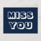 Miss You, bleu marine blanc moderne audacieux Carte postale