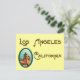 Un logo de Los Angeles dans un style de lettrage vintage, Art Déco ou Nouveau en marron et or avec une mission historique de Californie en turquoise dans le coin. Inspiré du style Arts & Crafts de Californie dans les années 1920 et 1930.