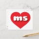 Cette carte postale est dotée d'un coeur rouge vif contenant les lettres coques inférieures pleines d'audace, blanches et arrondies ms, une abréviation ludique pour Mississippi, l'état magnolia. Le verso de la carte est vide, en attendant votre texte customisé ou vos sentiments manuscrits.