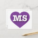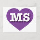 Cette carte postale est dotée d'un coeur violet plein de vitalité, contenant les lettres coques supérieures et chaudes MS, l'abréviation officielle du Mississippi, l'état magnolia. Le verso de la carte postale est vide, en attendant vos sentiments manuscrits ou le texte personnalisé.