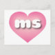 Cette carte postale est dotée d'un coeur rose avec un centre blanc contenant les lettres coques grasses, blanches et inférieures ms, une version ludique de l'abréviation pour Mississippi, l'état magnolia. Le verso de la carte postale est vide, en attendant votre texte customisé et vos sentiments manuscrits.