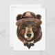 Ce design comprend un ours peint en aquarelles portant une cravate casquette et arc.