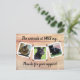 Carte postale avec des modèles de photos d'animaux sur le devant et deux lignes de texte personnalisé. Réalisée comme un "merci" de la part des animaux d'un refuge ou d'un site de sauvetage. Le fond est de l'apparence d'un grain de bois et chaque photo est encadrée de blanc, avec un design d'onglets de coin à l'ancienne. Le verso est vierge. Remplacez les photos de chat et de chien par les vôtres. En remarque, tous les animaux présentés étaient des membres adoptés de ma propre famille.