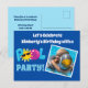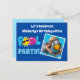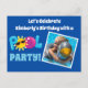 Cartes d'invitation pour une fête d'anniversaire d'enfant en été. Caractéristiques une touche de couleurs vives et amusantes sur un fond bleu royal. Insérez votre photo d'un enfant sur cette invitation de carte postale personnalisée et cool.