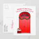 Cette carte postale conçue pour les fêtes de Noël présente des doubles portes rouges avec une fenêtre à sommet en palladium pour un message de nouvelle maison pour les fêtes. Il y a une guirlande de feuillage persistant sous la fenêtre et un sac de Père Noël rempli de cadeaux sur les marches. Personnalisez le texte de changement d'adresse et le message sur le recto et le verso, supprimez tout texte ou modifiez-le à l'aide de l'outil de conception pour sélectionner un style, une taille et une couleur de police différents.