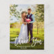 Carte de Remerciement de Photo de Mariage Brush Script Moderne - Écriture Blanche