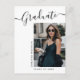 Cette carte moderne élégante mais simple de faire-part de graduation, dispose de texte moderne avec élégant script de calligraphie. La photo des diplômés met en évidence l'avant de la carte tandis que l'arrière de la carte offre des espaces de texte personnalisés pour des informations sur la graduation et le futur voyage. Écriture en noir sur blanc ou facilement customiser l'arrière - plan à une couleur de votre choix. Pour voir d'autres articles comme celui-ci, visitez mon magasin ici à "www.Zazzle.com/LakeViewCardCo". Merci