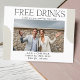Cette carte postale, qui vous permet de gagner un jour, est parfaite pour les amoureux du plaisir qui souhaitent partager leur grand jour ! Avec un design moderne "Free Drinks (and We're Getting Married)", cette carte personnalisable inclut votre photo, les noms, la date du mariage et l'emplacement.