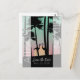 Design moderne avec flamingo, coucher de soleil et palmiers. Veuillez personnaliser le texte des deux côtés. (Noms, date, lieu, etc.) Convient pour l'annonce de mariages afin que les invités puissent réserver la date à temps.