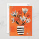 Des fleurs de mandarine, terreuses mais vibrantes, aux rayures vert olive sont soigneusement présentées sur un socle blanc cool.