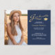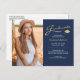 Cette carte de félicitations ou carte de remerciement de remise de diplôme double face et élégante avec 2 photos, présente un texte moderne fusionné avec un script de calligraphie élégant en or et blanc sur fond bleu nuit. Les photos sont une sur le devant et une sur le dos. Pour voir plus d'articles comme celui-ci, visitez ma boutique ici sur "www.Zazzle.com/LakeViewCardCo". Merci