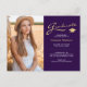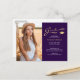 Cette carte de double annonce de graduation ou carte postale de remerciement élégante à 2 photos, présente un texte moderne fusionné avec un script de calligraphie élégant en couleur or et blanc sur un violet royal. Les photos sont une sur le devant et une sur le dos. Pour voir plus d'articles comme celui-ci, visitez ma boutique ici sur "www.Zazzle.com/LakeViewCardCo". Merci