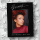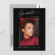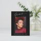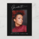Cartes postales de faire-part photo tendance, moderne et élégant, avec éléments design de texte moderne avec script d'encre de calligraphie. La photo du diplômé sur le devant de la carte est accentuée d'un dégradé délicat et minimaliste. Le dos de la carte offre des espaces de texte personnalisés pour des informations sur votre diplôme ou peut être effacé si vous souhaitez écrire un message à la main. Noir et blanc ou customiser facilement l'arrière - plan pour correspondre à la couleur primaire de votre école ou à n'importe quelle couleur de votre choix. Idéal pour les étudiants du secondaire, collégial et universitaire.