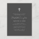 Composé d'une écriture cursive et d'une typographie serif ; le tout sur un fond blanc. Une simple croix en or faux décore subtilement la typographie. Ceci est une invitation de funérailles ou de mémorial moderne, simple et épurée.