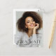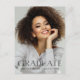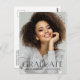 Cartes postales modernes et audacieuses "Photo" graduation, avec éléments design de sombres transparents, style de mode moderne lisant "GRADUATE", avec typographie minimaliste. La photo du diplômé sur le devant de la carte met en évidence toute la surface. Le dos de la carte offre des espaces de texte personnalisés pour des informations sur votre graduation et votre futur voyage. Idéal pour les personnes âgées du secondaire, du collège et de l'université.