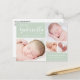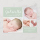 Une carte postale faire-part de naissance moderne pour partager les nouvelles de l'arrivée de votre bébé. Le front vert tendre comporte un collage photo de 4 avec le nom du bébé dans un script blanc moderne. Tous les autres détails clés, y compris la date de naissance, les statistiques de naissance, les noms des parents sont dans une simple typographie blanche. Le verso comprend votre adresse de retour et l'espace pour un message personnel ou supprimer le texte à laisser vide pour une note manuscrite.