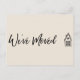 Gardez vos amis et votre famille à jour avec votre nouvelle adresse à l'aide de ce design simple et original. Lorsque vous voulez une méthode distinctive pour faire savoir à votre tribu comment vous trouver, cette carte est suffisamment versatile pour n'importe qui. Il présente de jolis graphiques typographiques qui lisent "We've Moved" sur le devant et "Keep in touch!" sur le dos, en utilisant une police de script moderne, décontractée, manuscrite. J'ai placé une petite illustration de maison sur le contour avant et rouge du coeur aquarelle sur le dos, en ajoutant une touche distinctive. Utilisez les champs modèle pour ajouter tous vos propres détails afin de personnaliser ce design pour votre propre usage. Si vous souhaitez modifier la jolie police sans-serif simple que j'ai utilisée pour le texte modifiable, ou si vous souhaitez déplacer des lignes ailleurs, cliquez sur le lien pour customiser la carte plus loin. N'hésitez pas à changer l'arrière - plan en couleur de votre choix. // 90 //