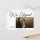 Annoncez votre récent événement avec ces cartes de faire-part et faites connaître à votre famille et à vos amis vos projets pour une célébration future. Customisez la photo pour partager la mémoire et personnaliser la date de votre mariage, l'emplacement et le nom de famille M. et Mme. Script moderne pour les mots "We eloped" en haut. Félicitation ! ©lddesignloft www.lddesignloft.com ©lorenadepante