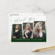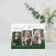 Cette carte de remerciement de fin d'études moderne, élégante et tendance avec 3 photos, présente des éléments de design de texte moderne fusionnés avec un style de calligraphie manuscrit. Vos photos de remise de diplôme sont affichées sur le devant de la carte tandis que le verso offre un espace de texte personnalisé pour un message de remerciement ou peut être laissé vierge si vous souhaitez écrire votre message à la main. Un dégradé blanc élégant passe à un vert forêt-chasseur sur le devant de la carte ou peut être facilement personnalisé à la couleur de votre choix.