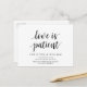 Il s'agit de la moderne minimaliste simple design thème, en fonte noire, invitation de mariage reprogrammée (reportée / report) carte postale (l'amour est patient). C'est la façon parfaite et élégante de faire le faire-part reprogrammé à vos amis et votre famille.