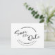 Simple et moderne noir et blanc enregistrer la date logo design design est parfait pour les couples d'aujourd'hui. La carte idéale pour envoyer un courriel à votre famille et à vos amis pour leur faire part de vos nouvelles passionnantes sur le mariage. Police de style de script informel.
