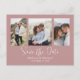 Une élégante carte postale de mariage simple pour annoncer la date avec un design minimaliste rose poussiéreux, un modèle élégant simple à trois 3 photos, une photo de fiançailles de couple multi-photos, un mariage moderne simple élégant, une carte postale de photos de fiançailles économique, une police de caractères à pinceau calligraphique moderne, une typographie calligraphique minimaliste, un pinceau classique traditionnel, un modèle simple pour annoncer la date, une annonce de date économique