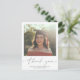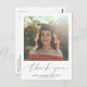 Simple photo moderne de graduation merci carte postale avec minimaliste écriture calligraphie lecture MERCI sous votre photo senior préférée. Message préimprimé personnalisé au dos ou laisser vide pour écrire une note manuscrite.